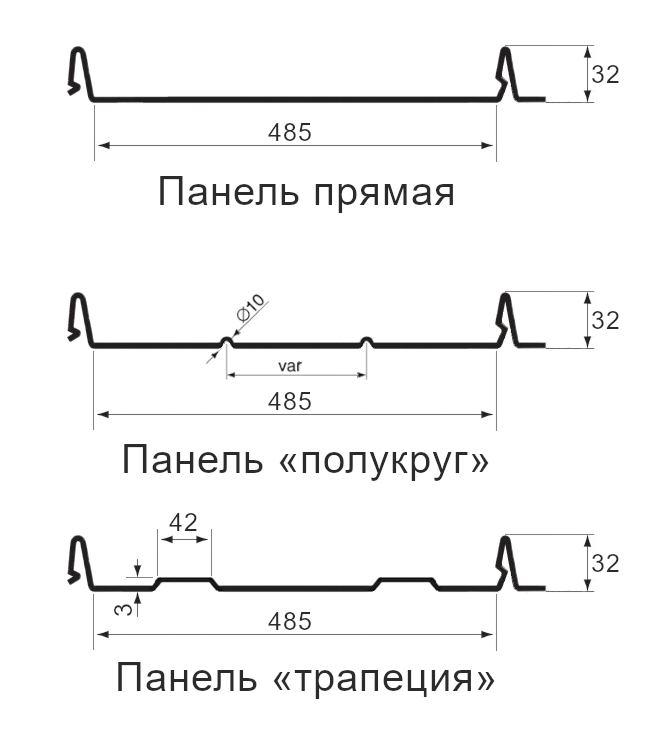 Лучше с накатками «полукруг» или «трапеция». Есть еще просто прямая панель, но именно дополнительные накатки придают бОльшую жесткость фальцевой кровли, а это важно, чтобы избежать волнистость при монтаже фальца.