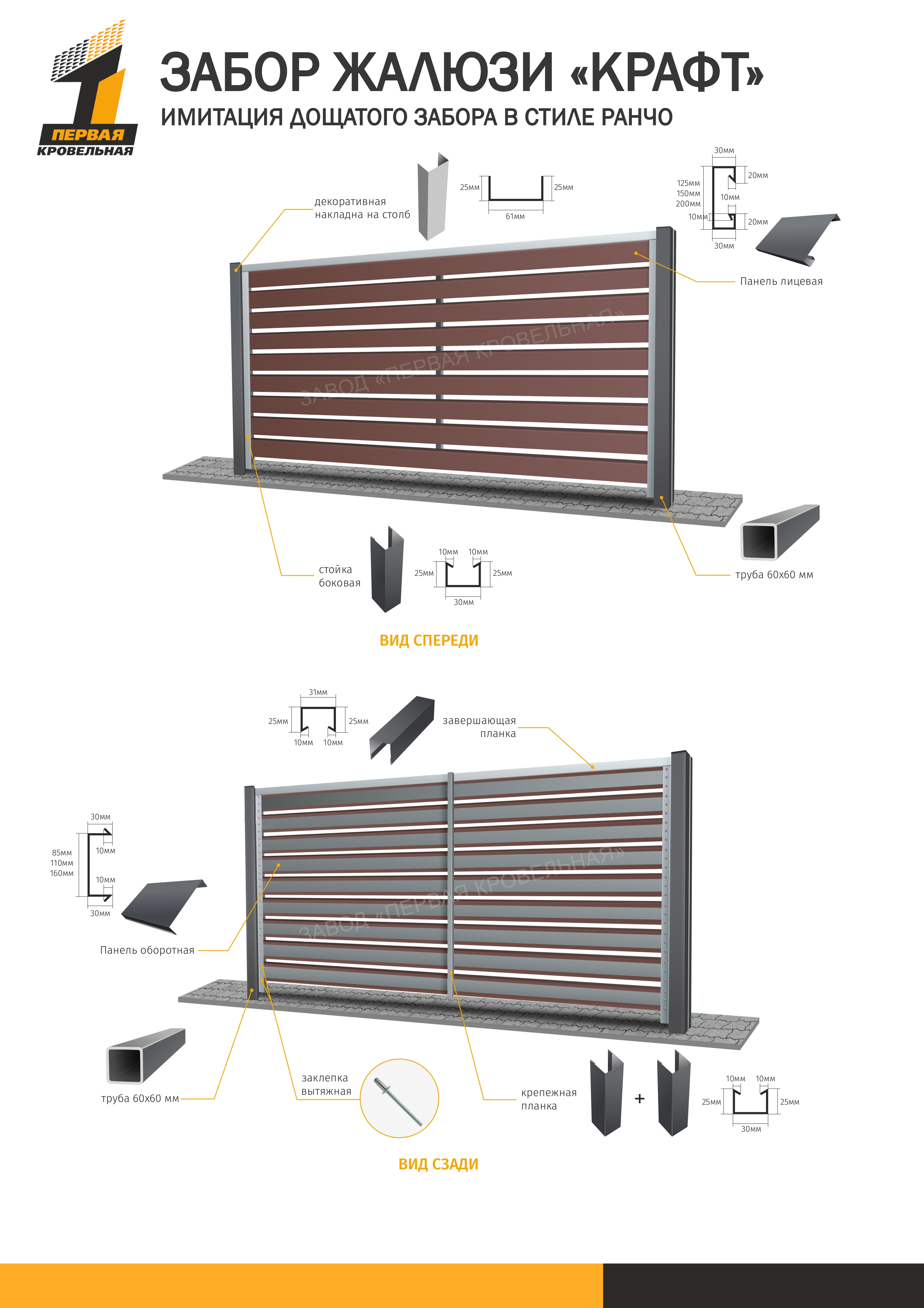 Инструкция по монтажу забора жалюзи из панелей «Крафт»: скачать инструкцию